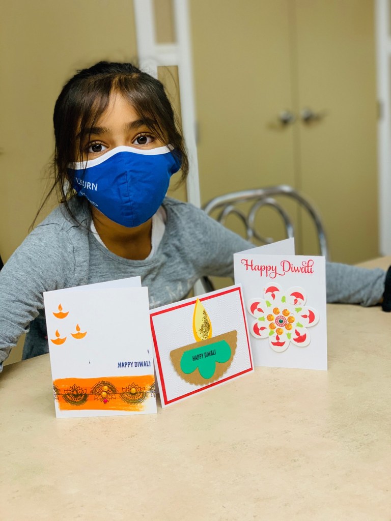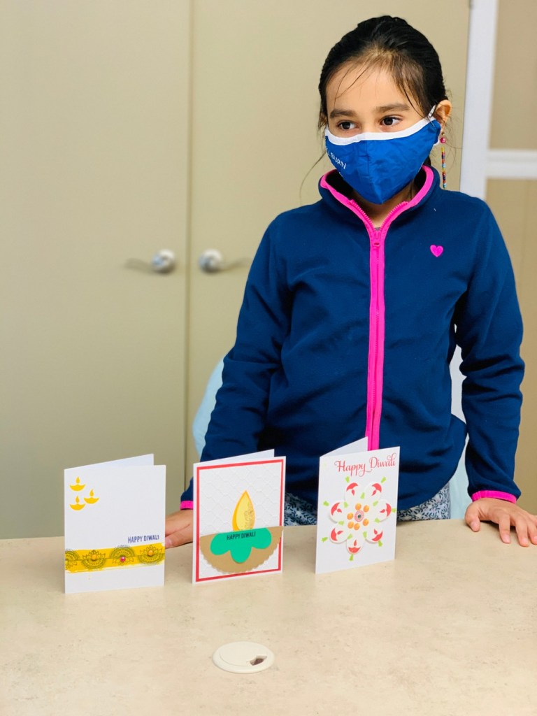 When you see children enjoying card making as much as you do, it is just a wonderful feeling. I hosted my first official card making class this past Saturday with 4 socially-distanced, mask-wearing participants. We worked on three different Diwali themed cards in 1.5hrs all hand-made from scratch. They learnt how the cards came together using a variety of techniques like stamping, embossing through folders, layering paper and inks. Children were quite proud of their projects at the end of class.