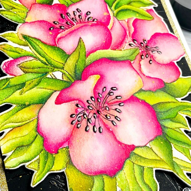 Background was heat embossed in raven black embossing powder from @brutusmonroe. And some quick flicks of the metallic watercolor from @altenewllc did the job.