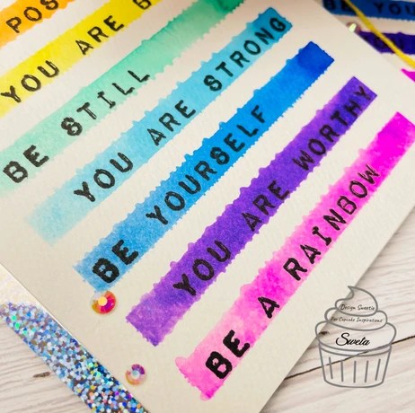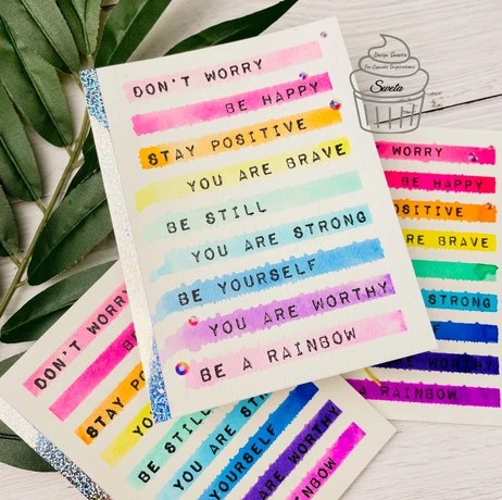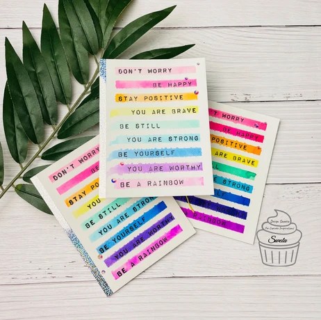 Its time for a new challenge over at Cupcake Inspirations and this time the prompt is stripes! I knew I was going to use the Erin Lee Creative stamps when I read this prompt. The red rubber stamp Stripe Background paired perfectly with Stripe Sentiment stamps to make a few rainbow colored cards. I only colored them up once with Tombow markers and got three stamped backgrounds each one a little lighter than the previous one.