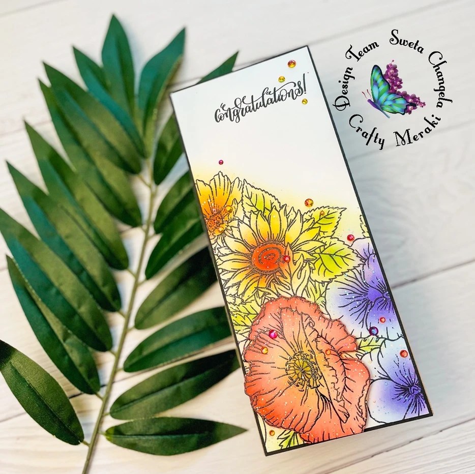 I have a confession to make today. It is about the Garden of Eden stamp from Crafty Meraki. I absolutely loved that huge stamp but I have been so scared to play with it… wondering how to approach it without getting overwhelmed. Well, the good news is finally I was able to play with it and surprisingly once I got started it dint take me long to finish this card!
