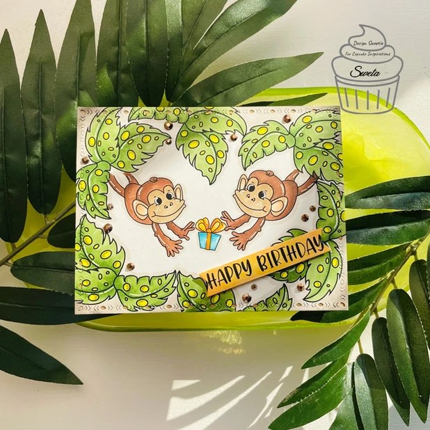 The theme this time around is Safari Animals. And Craftyscrappers is our generous sponsor for this challenge. They are giving away a digital stampset called Peek-a-boo and the Sweeties got a chance to create some projects using the same. Here is mine using the monkey and the leaf; copic colored – keeping the colors pretty simple.