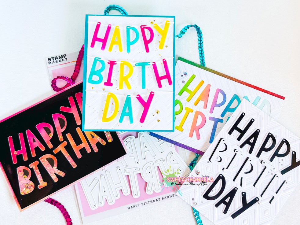 Well who doesn't like to get more usage from their crafty supplies. Today I'm sharing 4 different cards made from the same die. I am using the Happy Birthday Garland Die from The Stamp Market. I've had this one for a little while now but hadn't been able to use it. And with the fresh… Continue reading 1 Die 4 Cards = get more from your crafty supplies