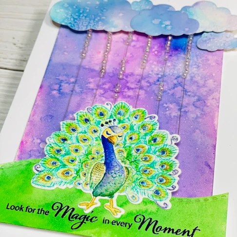 It is the final week of the Merakiversary at Craft Meraki. Peacock is India's national bird and I have many memories of seeing them in the community gardens back home. I had to create one dancing in the rain (also the name of this stampset )!! Backgrounds/clouds for the cards were created using Ken Oliver… Continue reading Dance in the rain ~ rainfall card