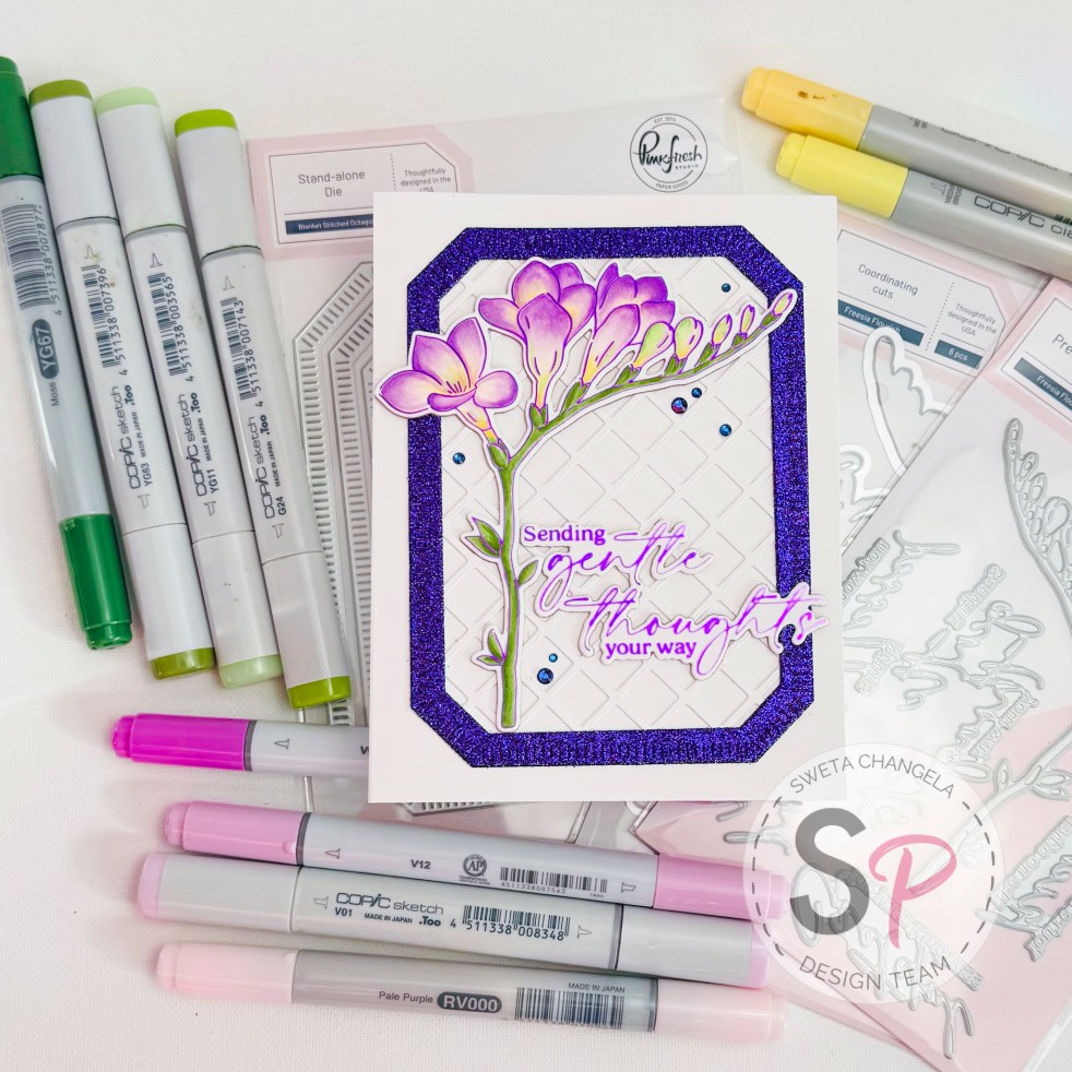 Hello Crafty Friends! I'm so excited to share my very first project for ScrapbookPal as a Design Team member! Today's card uses Freesia Flourish Press Plate and coordinating Die from Pinkfresh Studio. Instead of using the press plate with the BetterPress system, I used it with the Glimmer Machine to foil it and color it… Continue reading Freesia Flourish from Pinkfresh Studio